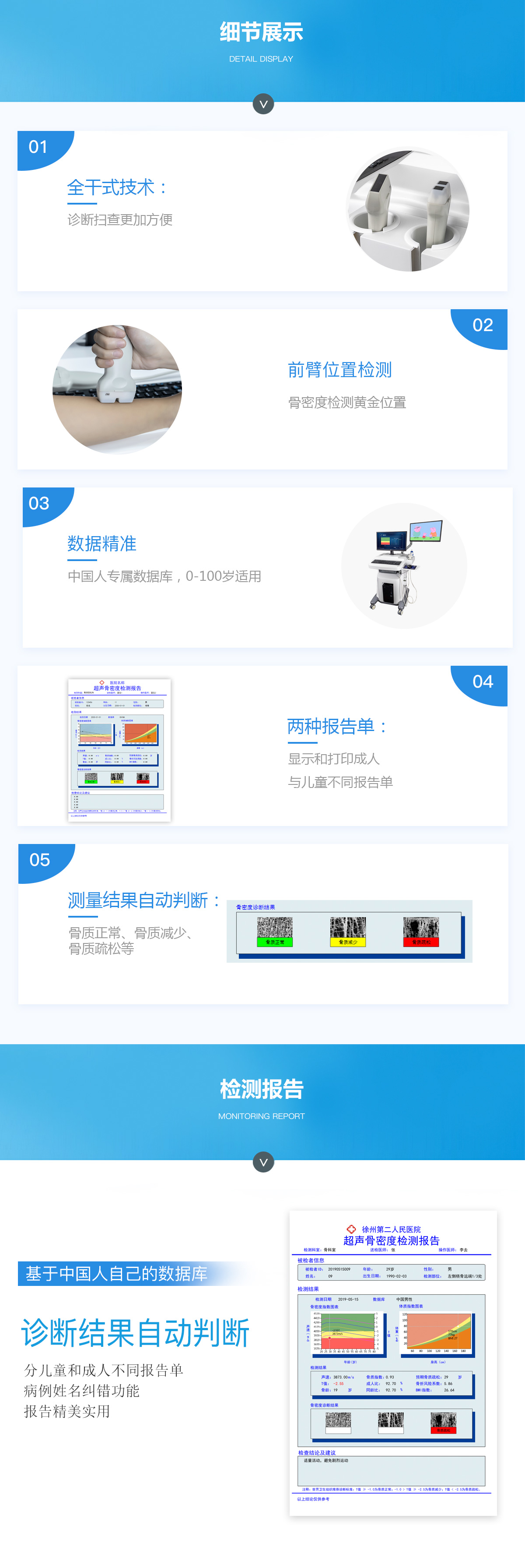 ■ 軟件優(yōu)勢::BMD-A系列超聲骨密度檢測儀一臺(tái)儀器裝配有智能分析系統(tǒng),經(jīng)濟(jì)實(shí)用。可測量0-100歲人群。